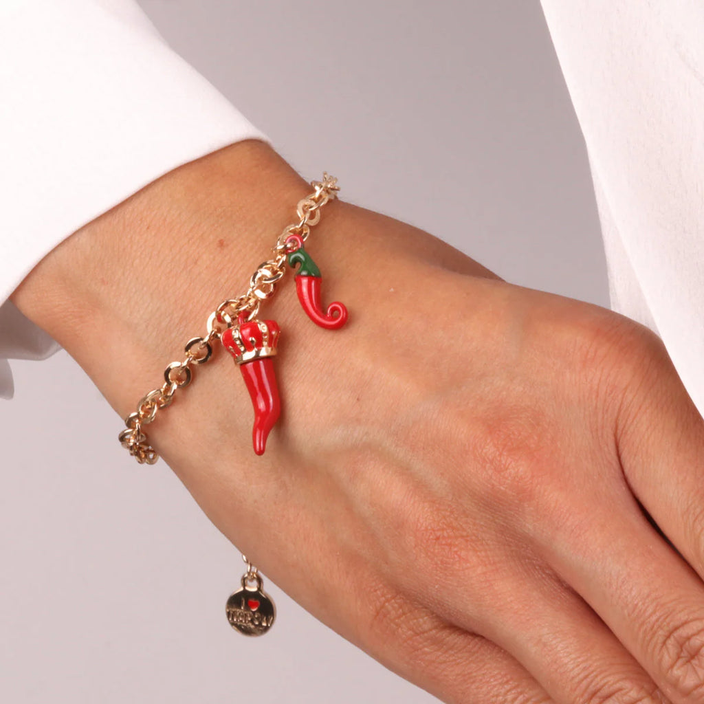 Bracciale in Metallo con cornetti portafortuna in smalto rosso