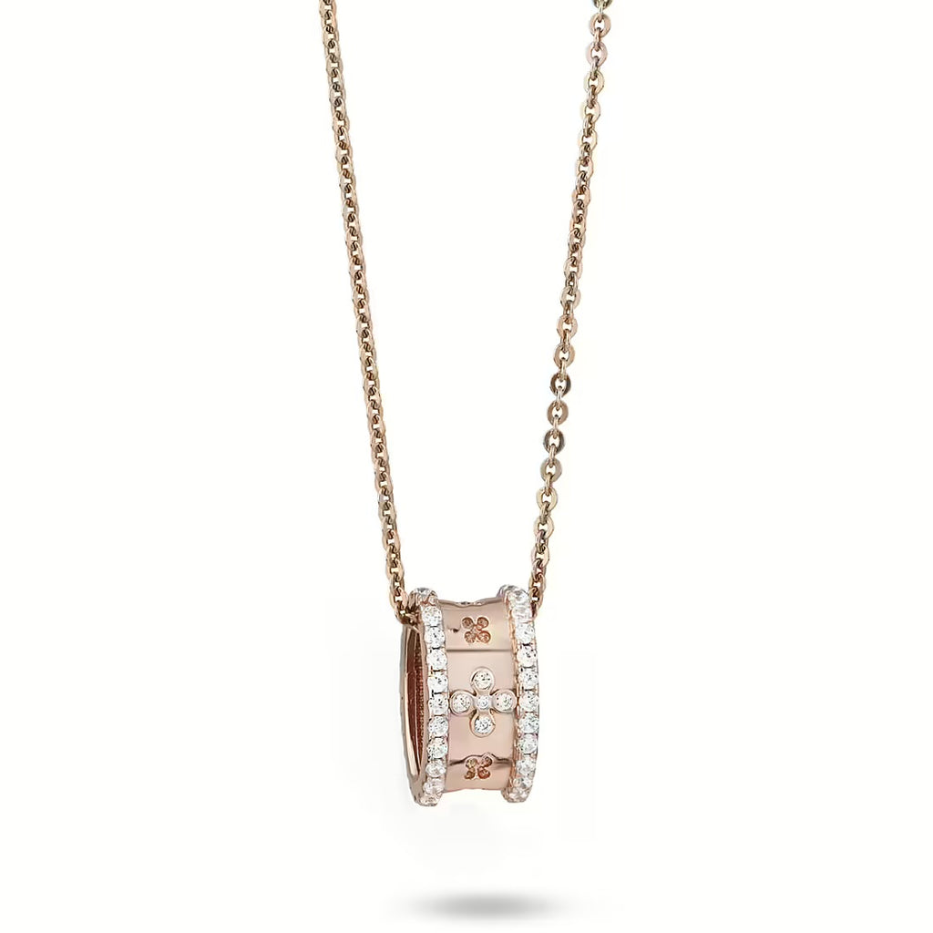 Collana da donna di Boccadamo della linea Medittanea della collezione Nexma. Collana placcata oro rosa con modulo ovale realizzato con motivo floreale e doppia corona di zirconi. Materiale: bronzo. Produzione: realizzato in Italia. Misure: lunghezza cm 39 estendibile fino a cm 44,5. Dimensione: pendente cm 1x1,5. Chiusura: con moschettone. La referenza è XGR724RS