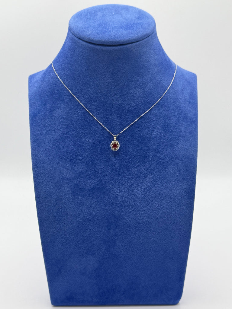 Questa collana punto luce rubino, realizzata in oro 18kt, è arricchita da un rubino da 0,39 carati e sette diamanti per un totale di 0,12 carati. Un gioiello raffinato che unisce la brillantezza dei diamanti alla profondità del rubino, ideale per donare eleganza e colore a ogni occasione speciale.