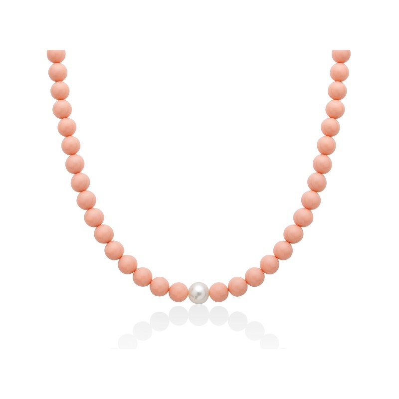 Acquista la collana Miluna della collezione Terra e Mare in pasta di corallo rosa, n.1 perla vera 8,5-9 chiusura in Argento 925 .