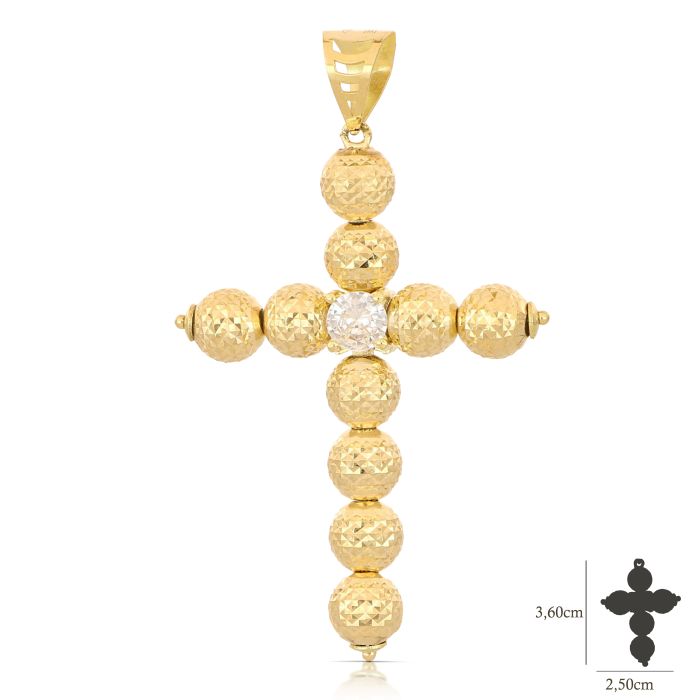 Eleva il tuo stile con questo splendido ciondolo a croce in oro giallo 18 kt, Il suo design radioso riflette la luce da ogni angolazione, rendendolo un centrotavola accattivante per qualsiasi outfit. Perfetto per coloro che apprezzano l'eleganza senza tempo e vogliono fare un'impressione duratura.
