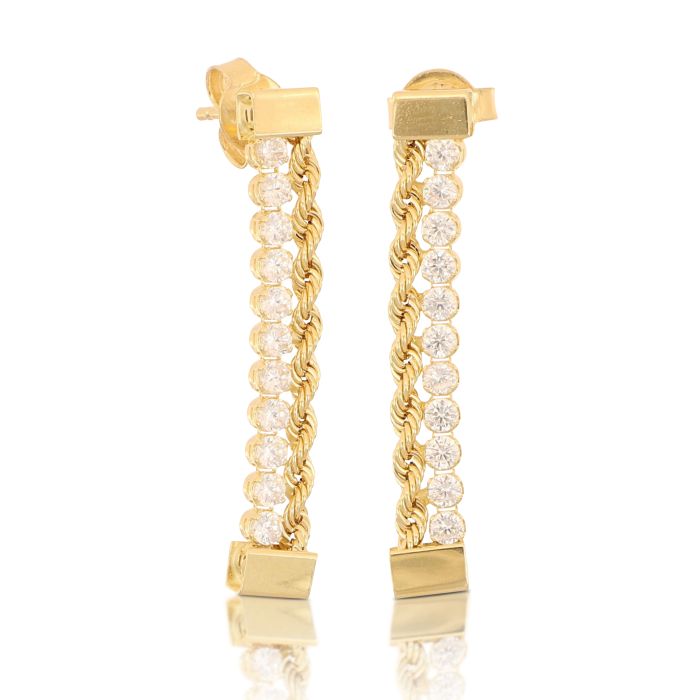 Questi orecchini a forma di fune, realizzati in oro giallo 18 carati, misurano 0,50 cm di spessore per 3,00 cm di lunghezza. Il design elegante e raffinato, arricchito da un dettaglio tennis, conferisce un tocco di classe e versatilità, ideale per valorizzare ogni look con discrezione e stile. Perfetti per chi cerca un gioiello prezioso e duraturo, capace di unire tradizione e modernità.