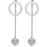 - Orecchini Lunghi In Acciaio Con Cuore E Cerchi Con Cristalli.