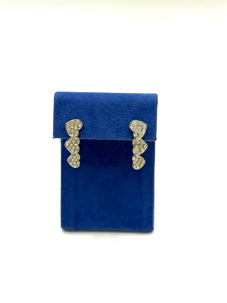 Eleganti orecchini pendenti a tris di cuore, realizzati in oro prezioso e impreziositi da 60 diamanti per un totale di 0,40 carati. Un gioiello raffinato che unisce delicatezza e brillantezza, perfetto per chi desidera un tocco di classe e luminosità in ogni occasione.