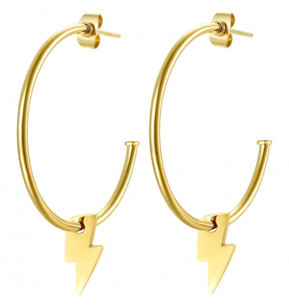 Orecchini a cherchio da donna sagapò realizzati interamente in acciaio 316L con finitura color oro.