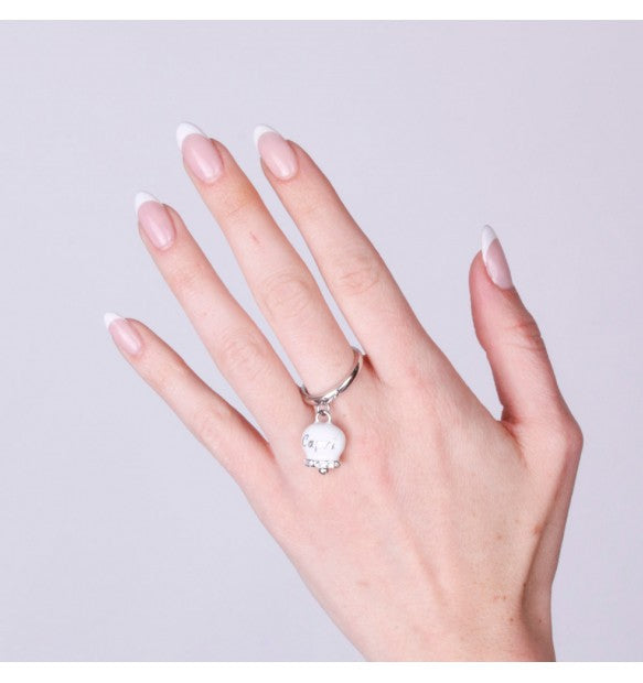 Campanella pendente con smalto bianco, scritta "Capri" in rilievo e cristalli bianchi.